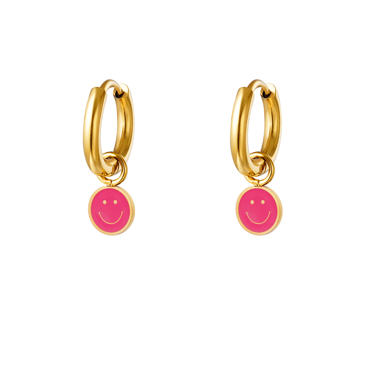Süße Ohrringe aus Edelstahl mit Smiley-Anhänger in hübschen Pastellfarben. Erhältlich in mehreren Farben wie Hellblau, Pink, Gelb und Rosa.