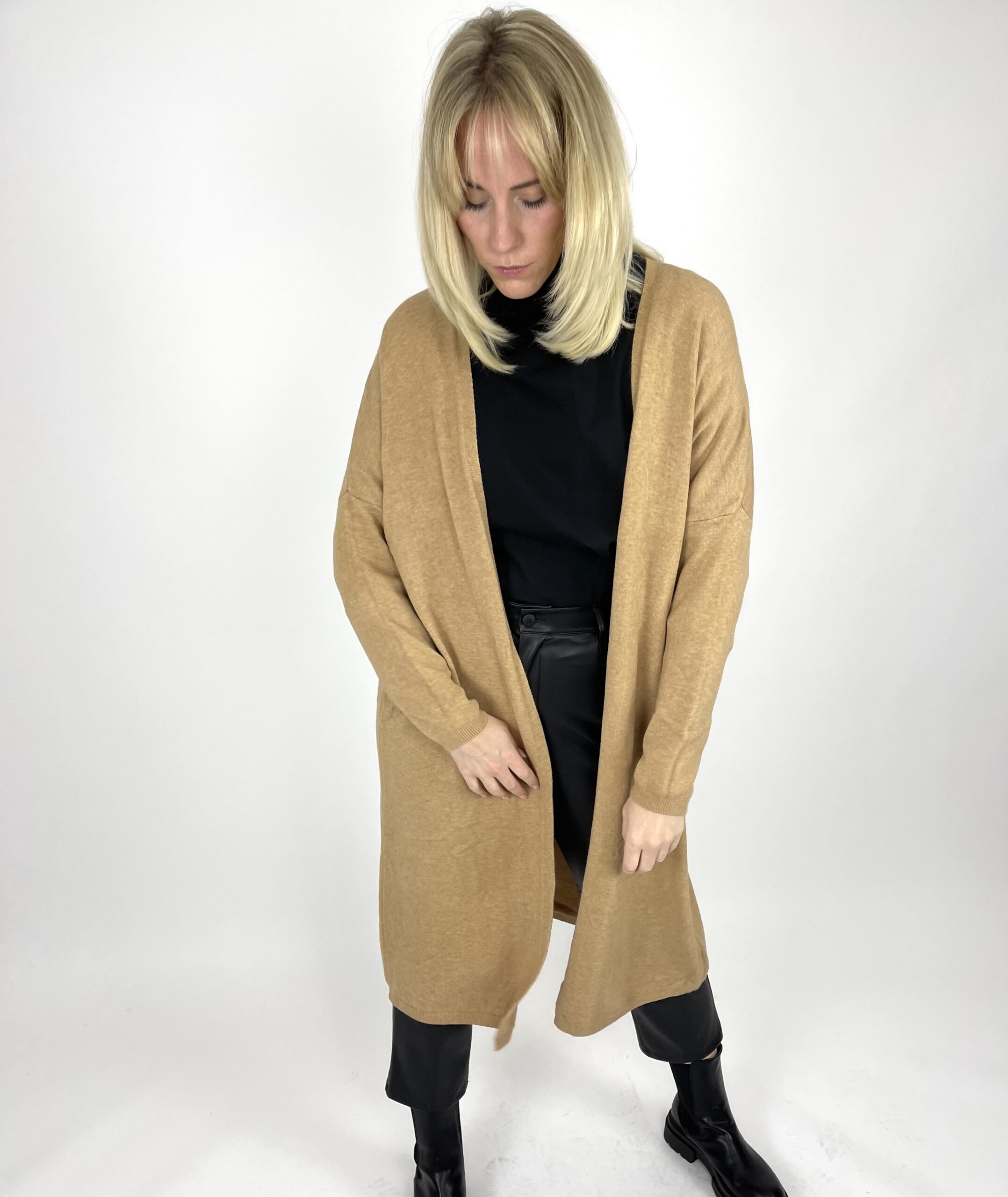 Langer Cardigan, oversized tragbar. Überschnitte Schultern