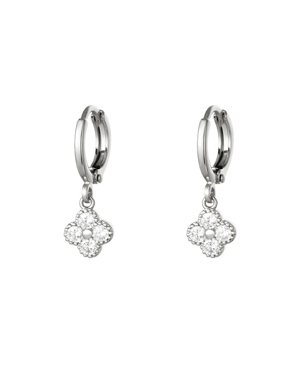 sehr kleine, dezente Creolen mit einem Anhänger in ,,Blumenform-Glitzer” versehen, schlicht und elegant gehalten, super leichter Klickverschluss, Durchmesser 1cm
